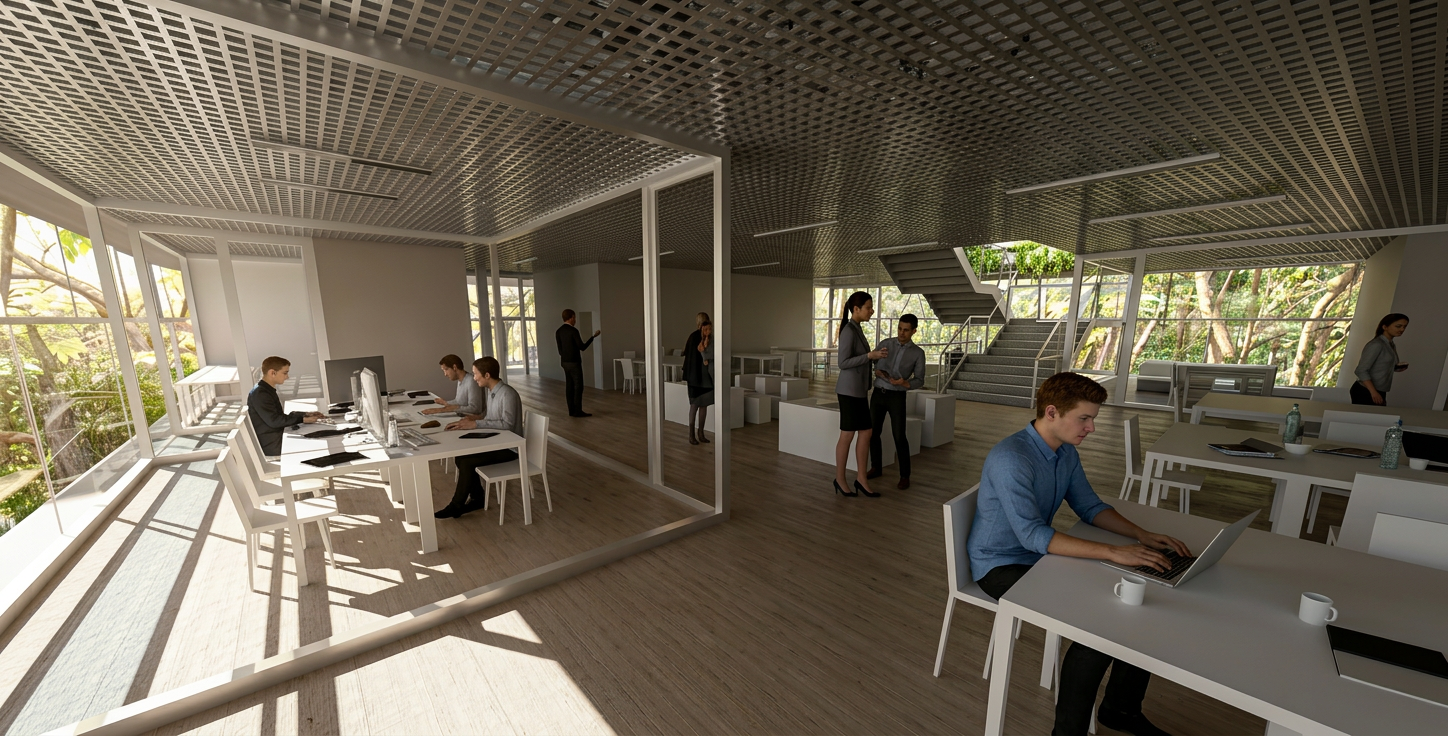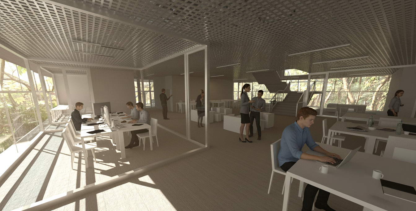 This headquarters is designed as a hub for community-oriented architecture, promoting interaction and a shared sense of purpose among its occupants. The transparent glass facade and interconnected, multi-level interior voids create a dynamic of openness and shared experience. This design fosters a user-centric environment where constant visual and physical links between different levels encourage spontaneous collaboration and the cross-pollination of ideas, crucial for a center of scientific innovation. The open-plan spaces are intended to enhance teamwork and communication. By prioritizing natural light and views of the surrounding rainforest, the design significantly contributes to the well-being of its occupants, which can reduce stress and improve mood and productivity. This approach to socially responsible design creates a unified whole, where research and activities feel interconnected, directly impacting employee engagement and satisfaction.