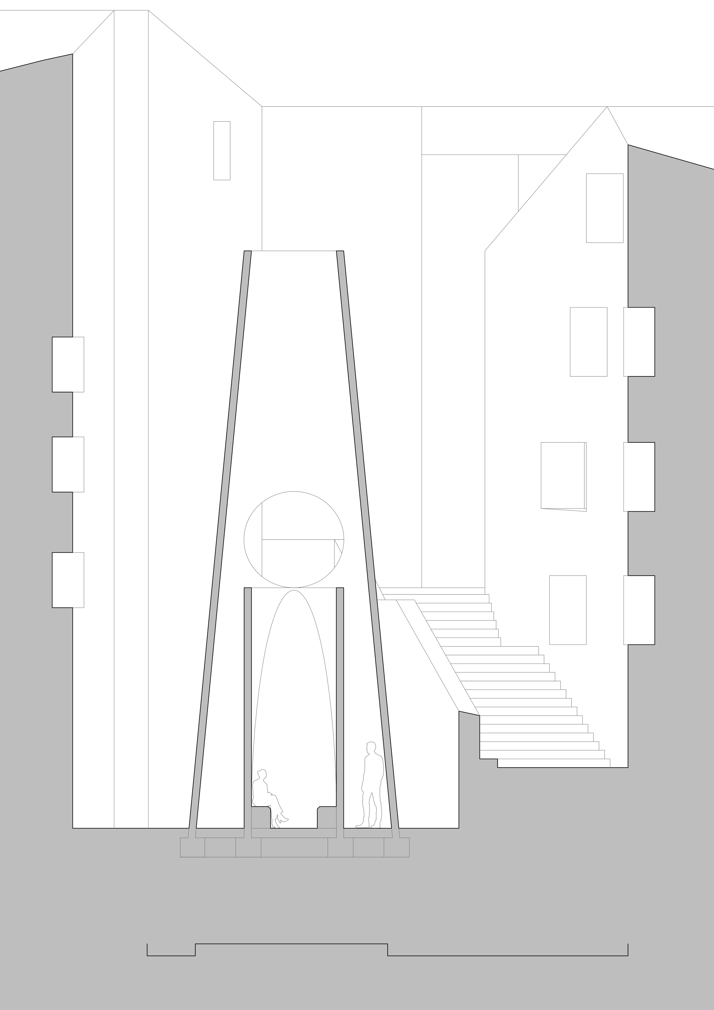 As an urban infill project, the chapel sensitively inserts a contemporary element into a dense, historic context. It represents a thoughtful approach to integrating contemporary architecture in historical contexts, creating a dialogue between old and new. This small-scale intervention has a significant impact on the urban fabric by activating a courtyard and enhancing the public realm. The project contributes to a more pedestrian-friendly design by creating a point of interest and a place for pause within the city.