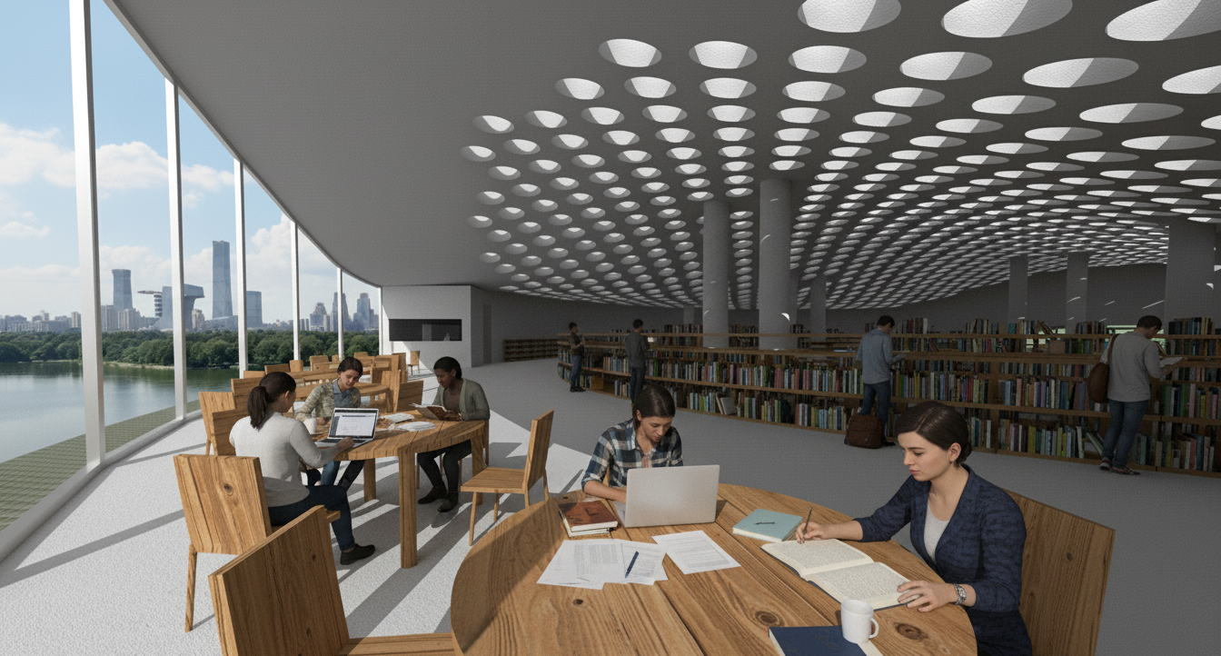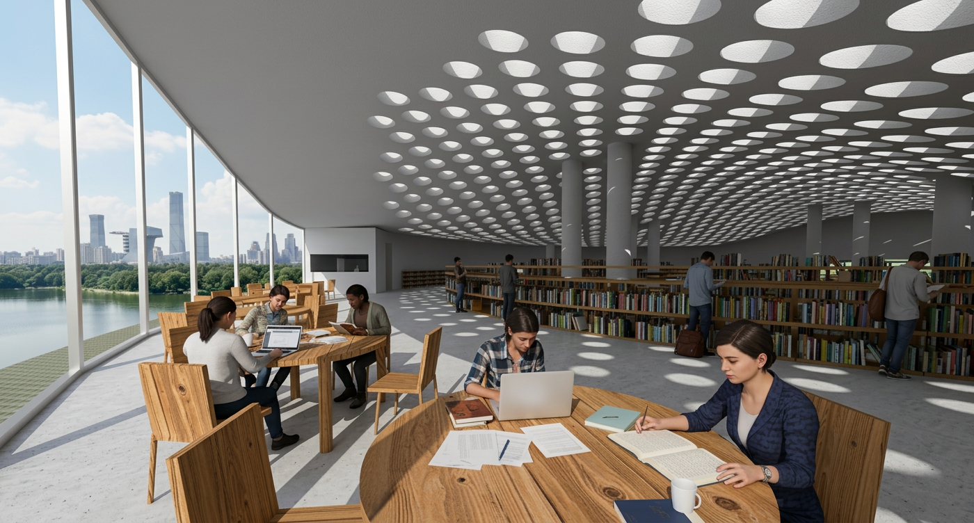 The Pavilion is a prime example of community-oriented architecture, designed to enhance social interaction and the well-being of its users. By creating a central, open space for performances and gatherings, the library actively encourages public space activation. The concentric layout guides visitors inward, fostering a sense of shared experience and community. This user-centric design makes the library more than just a place for reading; it becomes a hub for cultural events and social connection, strengthening the community fabric. Libraries are increasingly recognized as vital spaces for fostering social cohesion by providing a welcoming environment for diverse groups to connect.