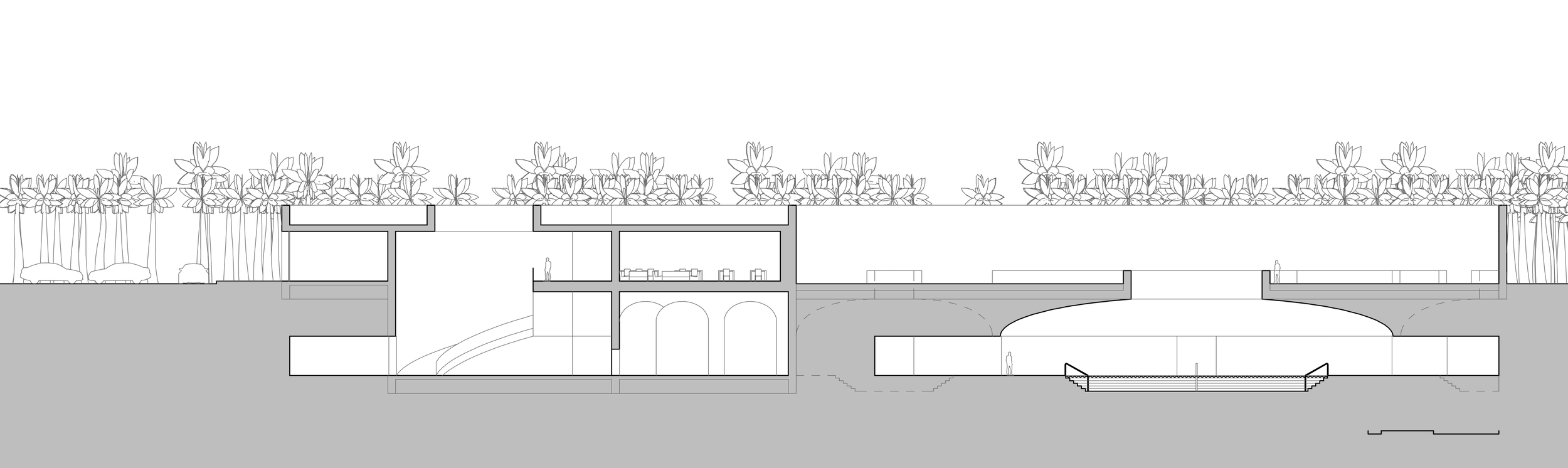 Environmental research centered on the extreme fragility of the Yucatán's underground river systems and the absolute necessity of passive sustainable design. A primary environmental directive was ensuring that the excavation and subsequent daily operations would not pollute or intersect with the natural water table below; thus, the facility is engineered as an entirely self-contained, watertight vessel within the rock. Passive climatic strategies dictate the architecture: the subterranean depth utilizes the earth's constant ambient temperature to drastically reduce mechanical cooling loads, while the strategically placed overhead oculi induce natural stack-effect ventilation. Above ground, the green roof and sunken open-air pits are integrated with deep-soil zones planted entirely with endemic, drought-resistant Mayan jungle flora, promoting local biodiversity and managing localized stormwater runoff.