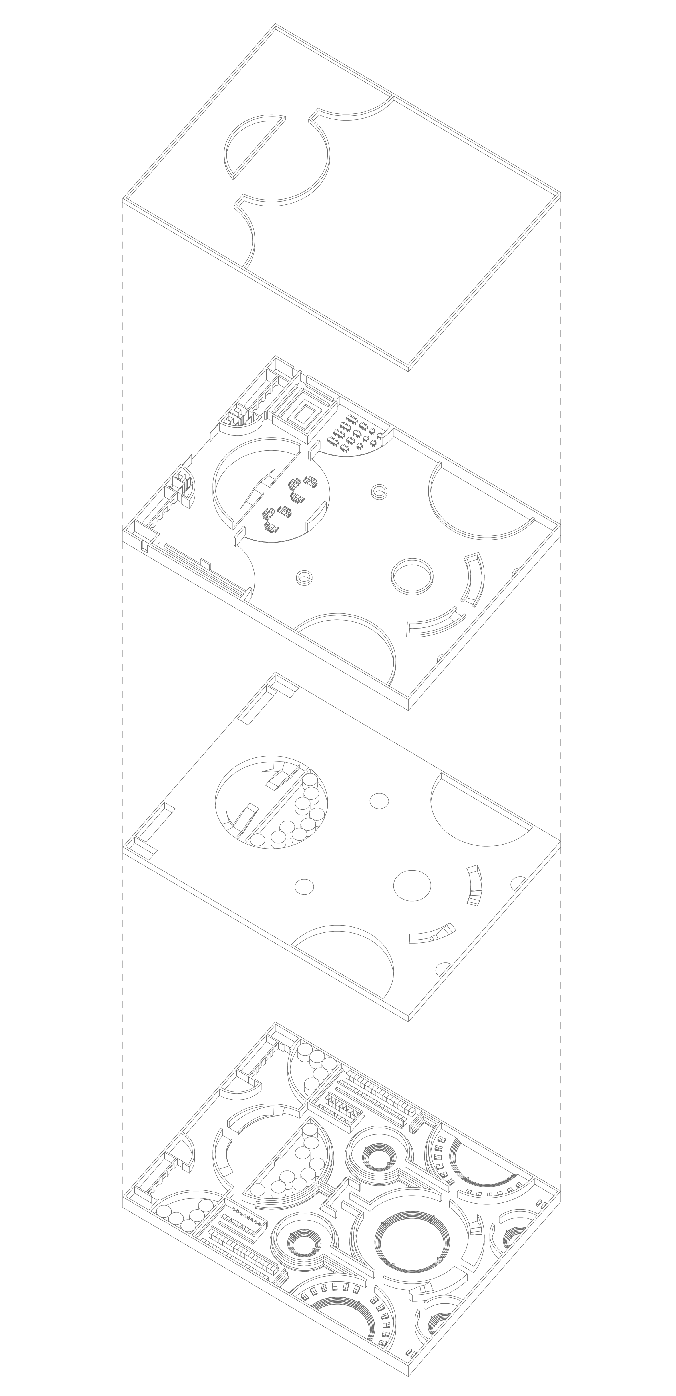 The social foundation of this project stems from a dual research focus on ancient Mayan socio-spiritual practices and the historical evolution of the public bathhouse as a communal equalizer. In Mayan culture, cenotes were not merely water sources but vital community hubs and sacred portals to the underworld. By translating this profound communal reverence into a modern wellness context, the bathhouse fosters a shared, "unplugged" environment where digital distractions and social hierarchies dissolve. The programmatic separation of active, above-ground communal spaces (the café and yoga garden) and quiet, subterranean contemplative zones (the thermal pools) accommodates a broad spectrum of social interaction. This sequence caters to the contemporary human need for both collective, community-building fitness and solitary, silent sanctuary, creating a holistic social infrastructure for well-being.
