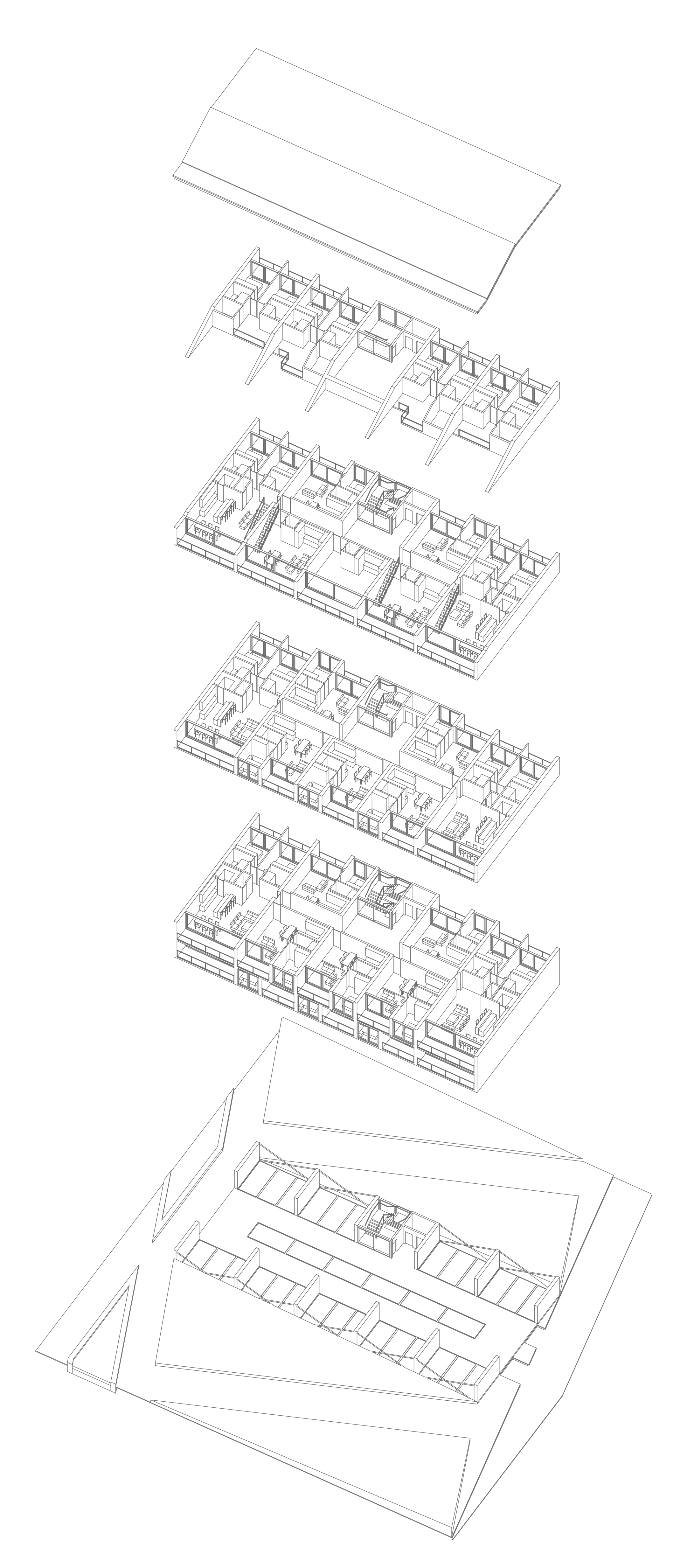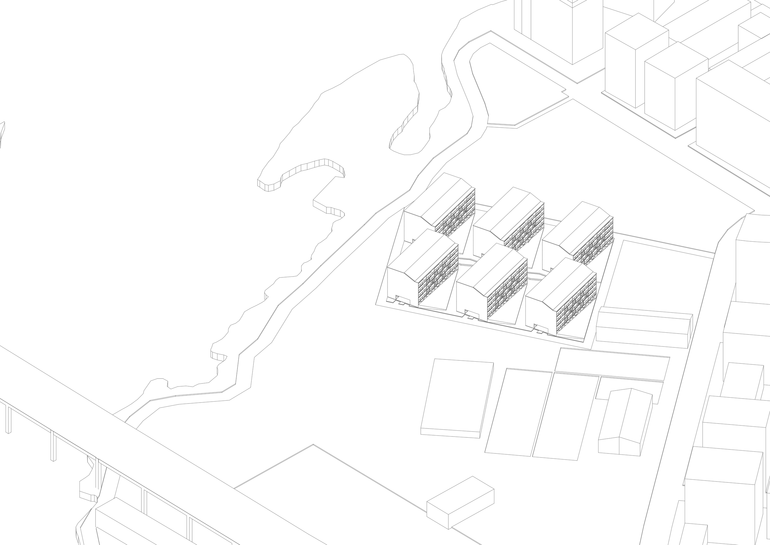 The development is organized into blocks that create landscaped interstitial spaces. These green gardens, connected by a central pedestrian boulevard with a fountain, are designed to foster a walkable and socially interactive community. The project aims to provide a practical and replicable model for urban housing that is both economically accessible and thoughtfully designed.